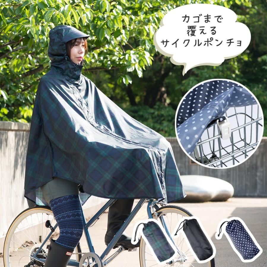 楽天市場 レインポンチョ 自転車 カゴまで覆える カゴポン カゴすっぽり レディース メンズ レインコート 通勤 通学 前かご カバー レインカバー ポーチ付き 防水 リフレクター 買い物 合羽 カッパ 自転車用 おしゃれ ドット チェック 黒 サイクルポンチョ かわいい 軽量